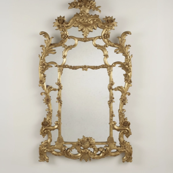 The Beaumont Gilded Rococo Mirror is a statement of timeless artistry and craftsmanship. Hand-carved from solid mahogany with a mahogany veneer back and finished in rich gilded detail, this heirloom piece reflects the elegance of 18th-century European Rococo design. Its refined floral scrollwork and crest carving create an opulent silhouette, while the 3mm mirror glass remains true to antique tradition.