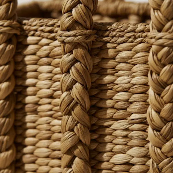 Handwoven from natural rattan and water hyacinth, the Bristol Braided Carryall brings warmth and structure to any room. The braided handles and thick woven walls give it a substantial, sculptural presence — more refined than the casual baskets commonly found in the market.