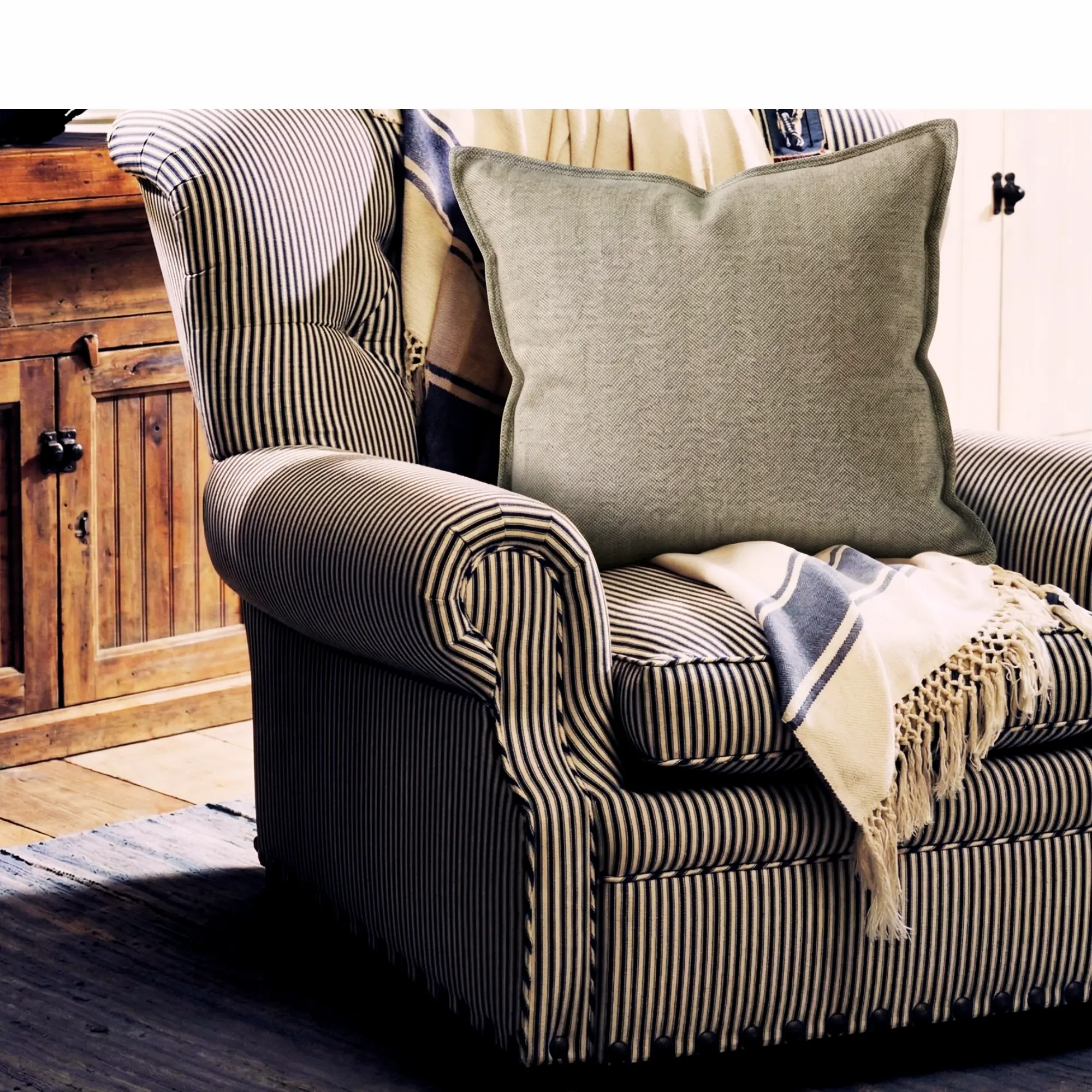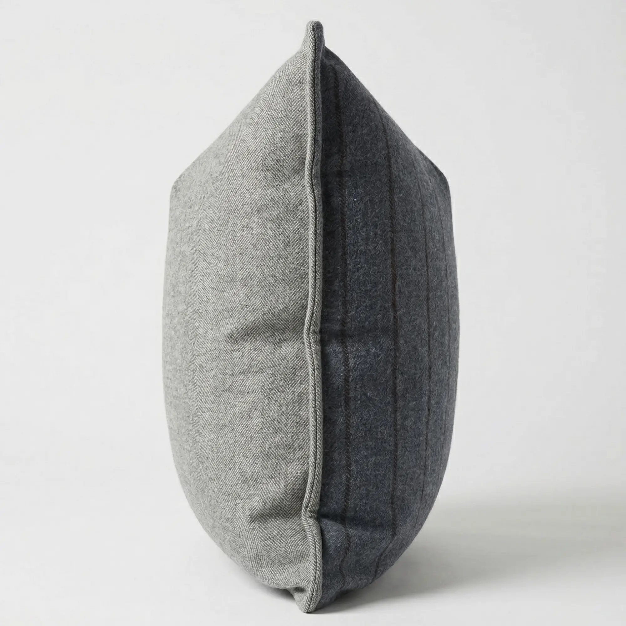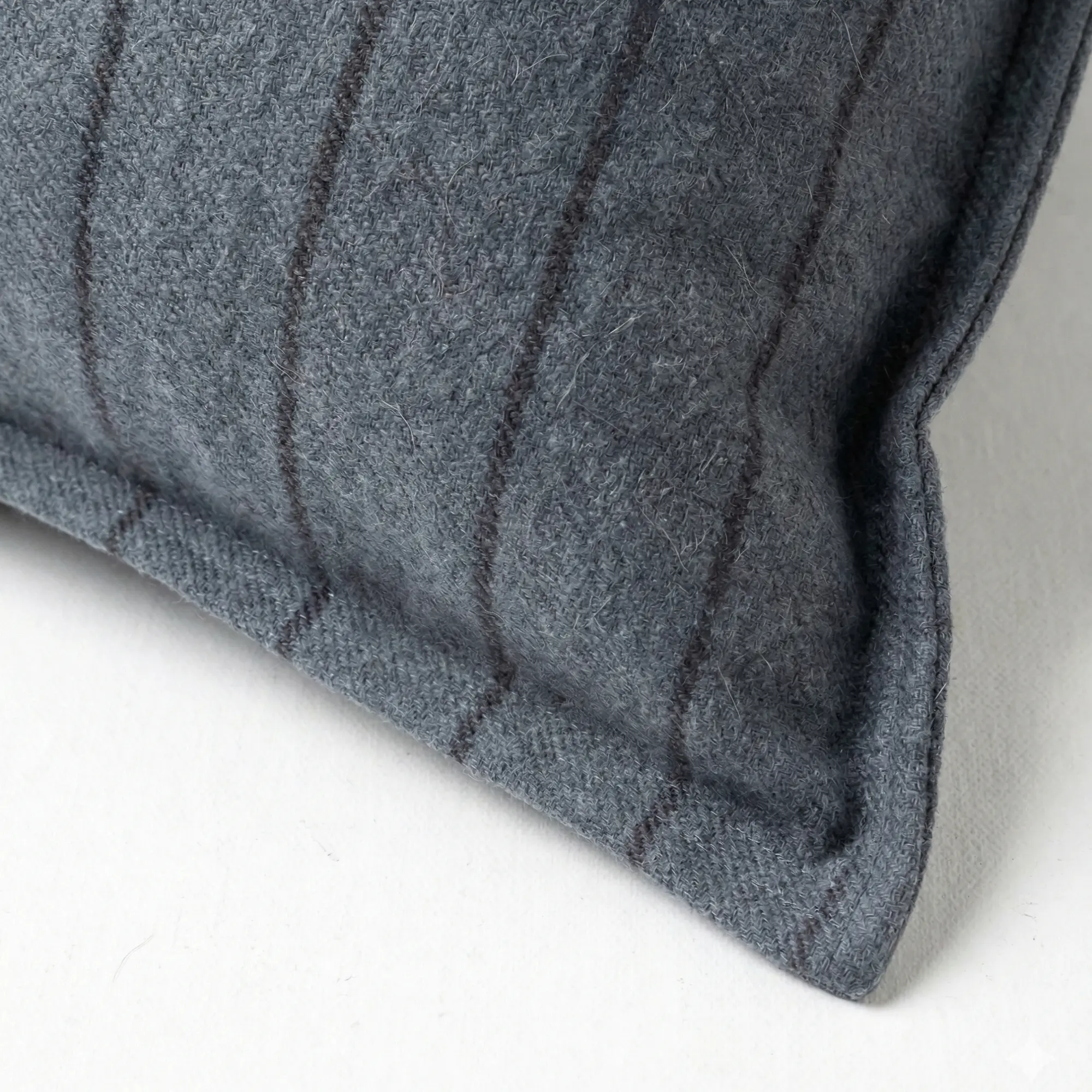Crafted in 100% brushed cotton, the pillow has a soft hand while maintaining a disciplined, refined character. The herringbone weave introduces subtle movement across the surface, while the striped reverse offers a more defined expression when styled from the opposite side.