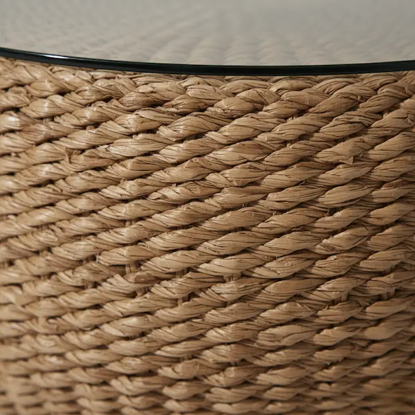 The Devon Woven Cocktail Table unites heritage craftsmanship with modern ease. Handwoven from natural lampakanay fibers, its sculptural form adds warmth and organic texture to any room. The tempered glass top offers a smooth, durable surface while revealing the intricate weave beneath—a testament to timeless artisanal design.