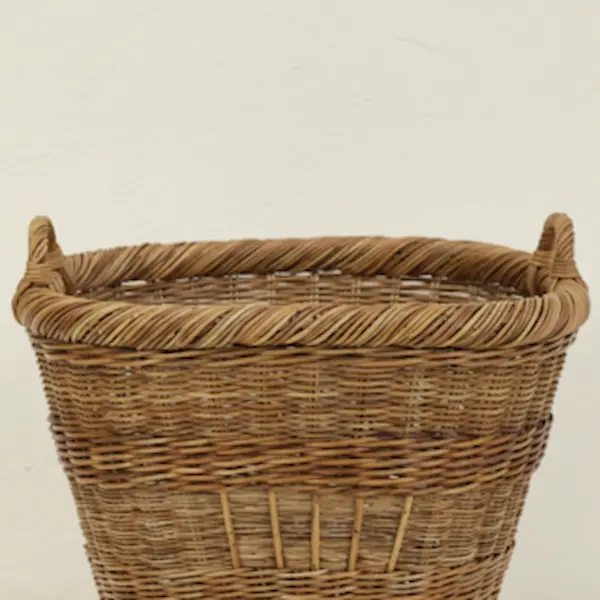 Handwoven from natural rattan and seagrass, the Devonshire Collector’s Basket balances generous scale with a refined, sculptural silhouette. A thick braided rim and wrapped side handles give it a substantial presence in an entryway, beside the fireplace, or at the foot of a bed, while the warm Antique Natural finish lends an effortless, lived-in elegance.