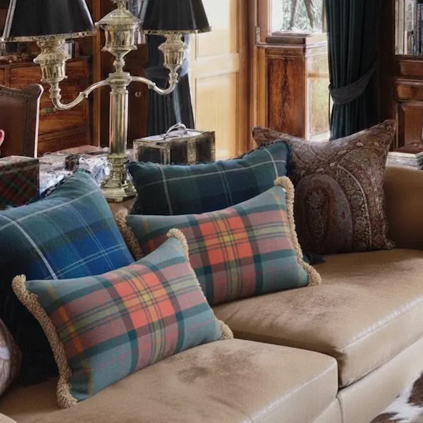 Crafted with traditional artistry, the Glenford Plaid Cushion brings a refined nod to heritage design to both classic and contemporary interiors. Woven on authentic Jacquard tapestry looms by skilled artisans, the tartan front shows nuanced color and texture, while a plush British velvet back adds soft contrast and warmth.