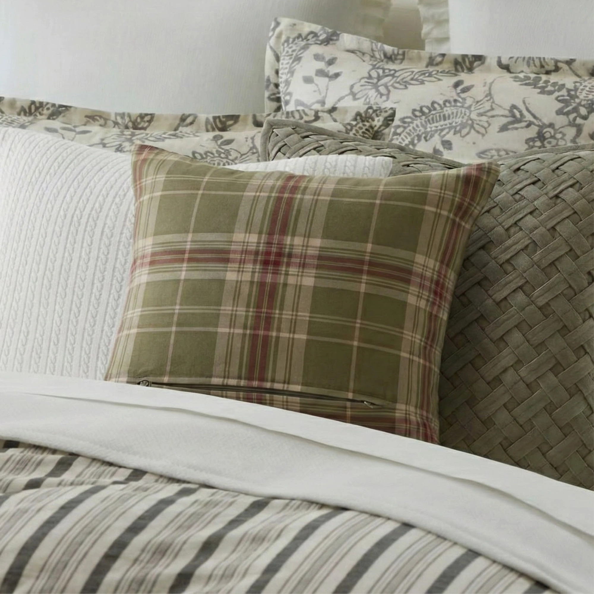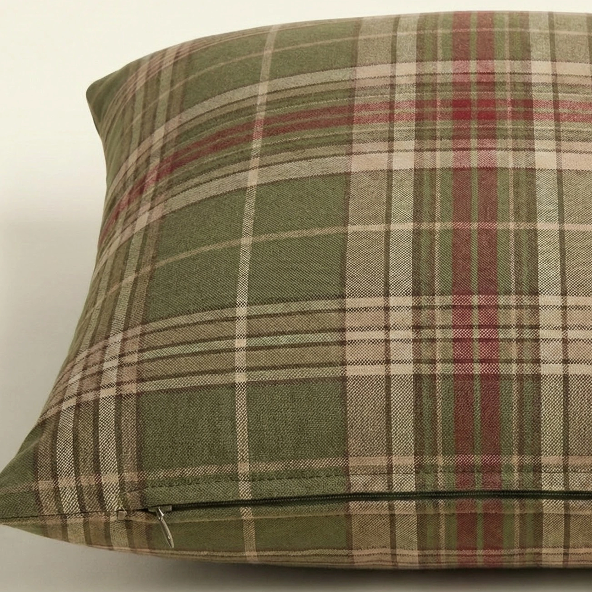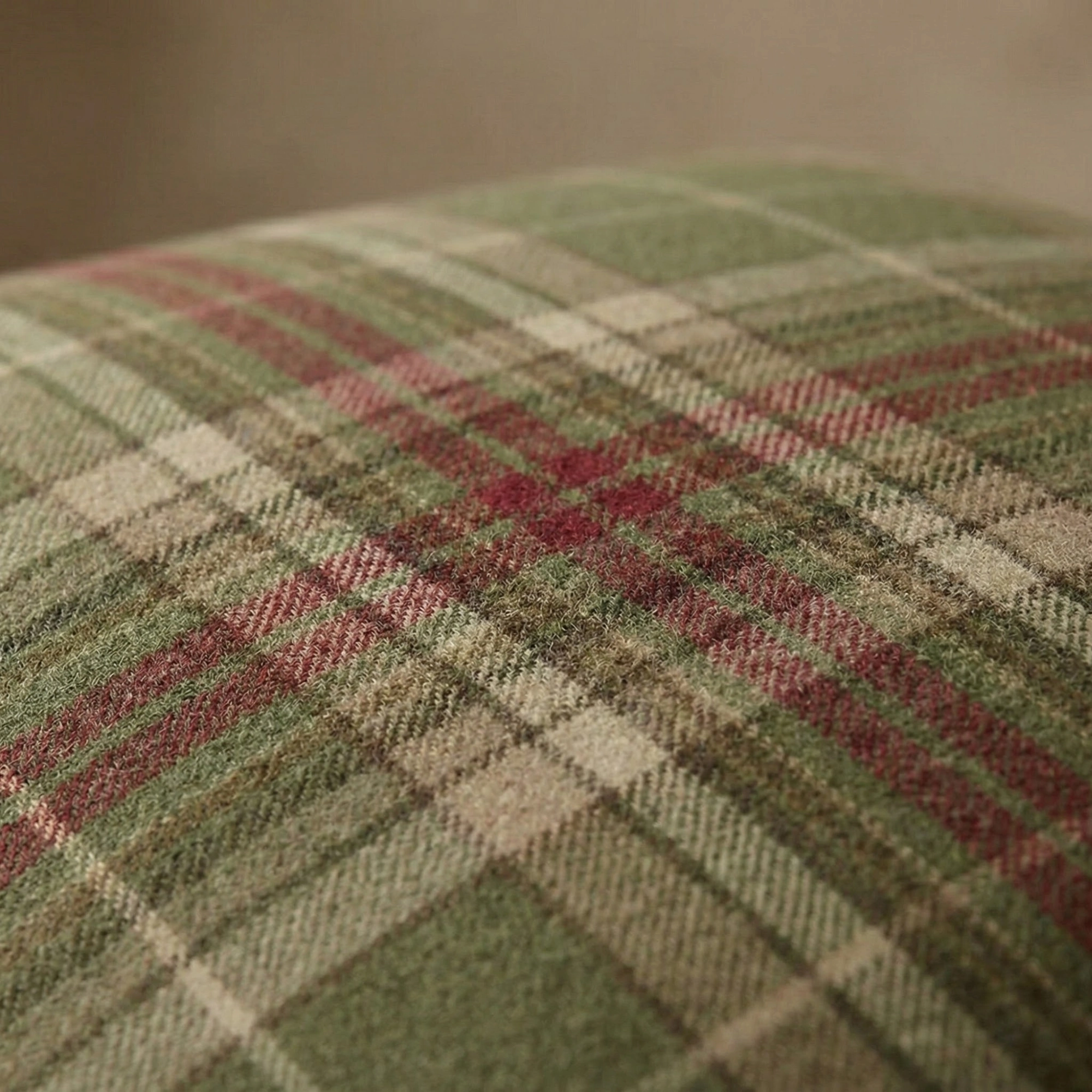 Highland tradition, rendered with restraint. The Highland Estate Wool Throw Pillow is woven in the UK from 100% pure wool in a classic tartan check, evoking the warmth of a Highland retreat without slipping into pastiche. The palette of olive, soft taupe, and deep claret reads as heritage rather than trend, offering depth and quiet structure.