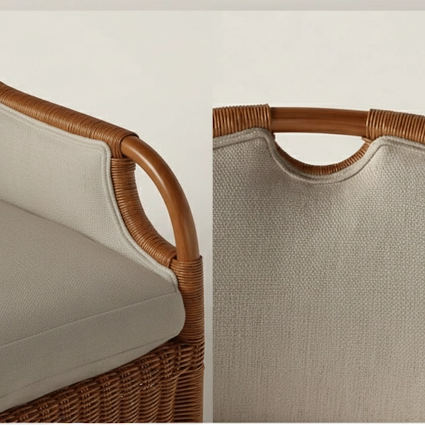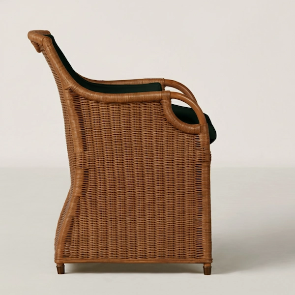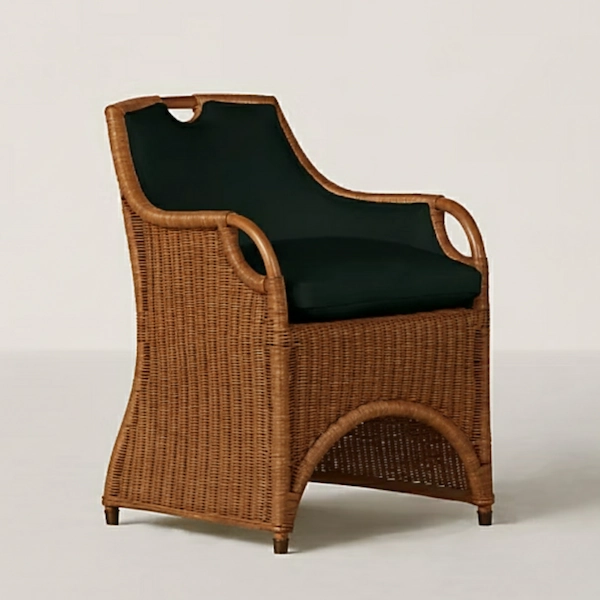 Inspired by classic cabana and veranda seating, the Kingston Wicker Dining Chair is crafted with gentle curves and a handwoven wicker body for an inviting, lived-in elegance. The swooped arms and arched base lend a graceful silhouette, while the upholstered back and cushioned seat ensure lasting comfort at the dining table or in a sunlit seating nook.