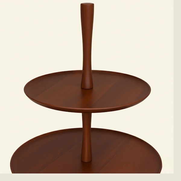 Crafted from solid mahogany, the Regency Two-Tier Mahogany Stand brings refined warmth to the table. The natural grain is enhanced by a hand-polished finish, giving the piece a subtle, timeless glow. Two circular tiers rise along a sleek central post, offering a graceful way to present pastries, fruit, or hors d’oeuvres with effortless sophistication. Equally suited to everyday living and special occasions, it transitions seamlessly from kitchen to table to display sideboard.