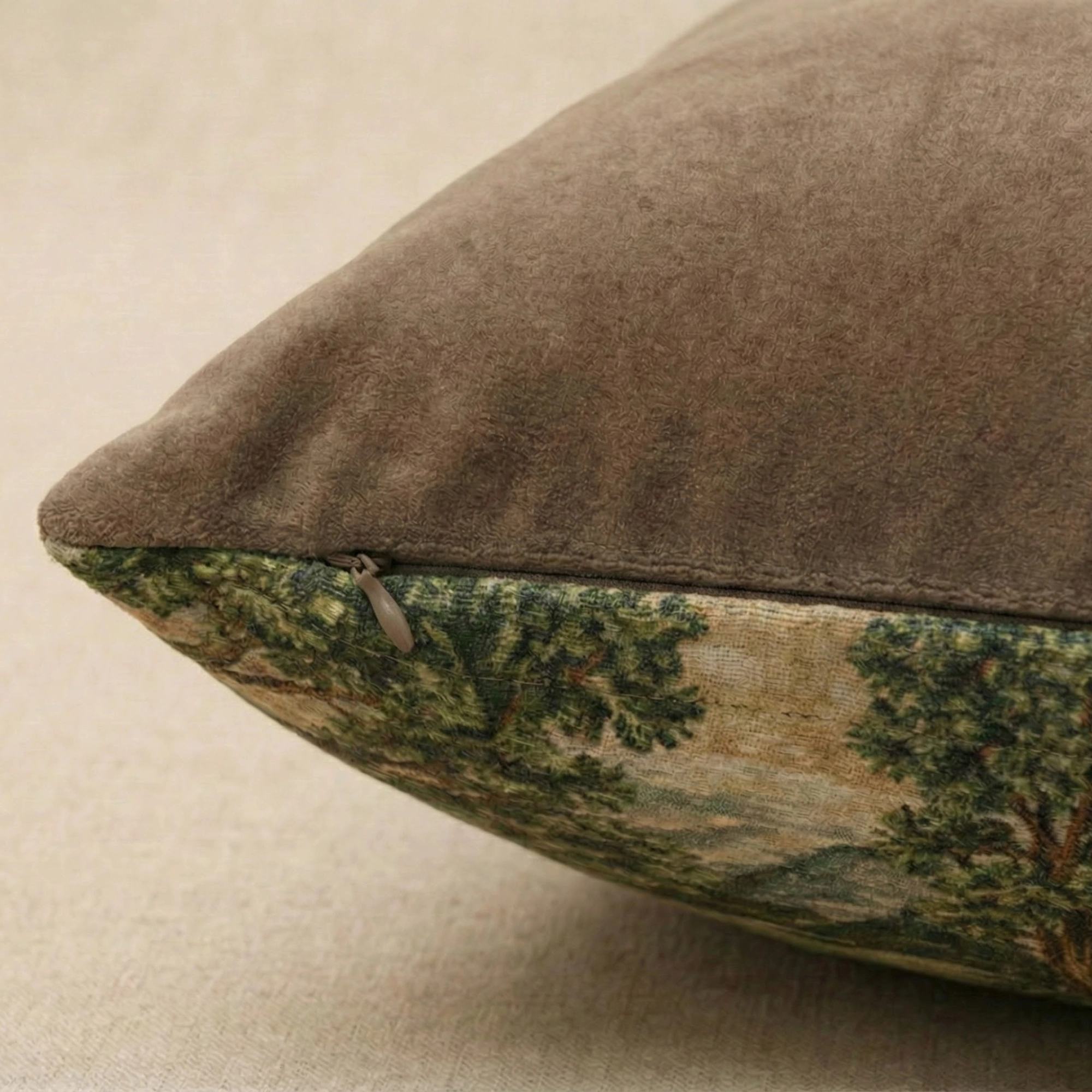 A classic English motif, rendered with quiet authority. The Stagwood Tapestry Throw Pillow features a poised stag set against an archival landscape, woven with the depth and discipline of traditional tapestry. The front reads like an heirloom panel, while the reverse is finished in velvet for a softer, more luxurious hand.