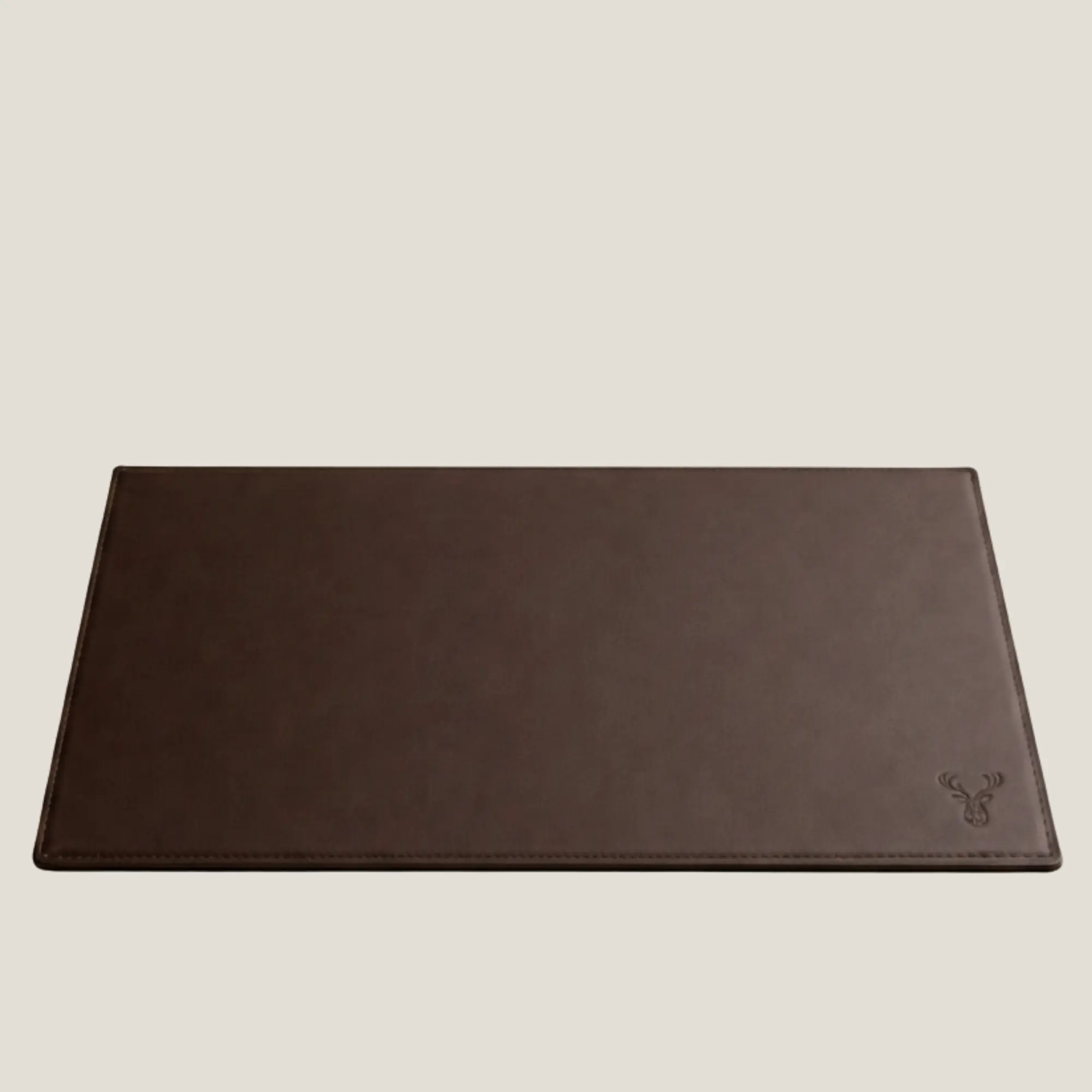 Layer the Ashbourne Leather Desk Blotter on a mahogany or walnut desk to create contrast against polished wood. Pair with a brass desk lamp and a leather-bound ledger for a composed study aesthetic.