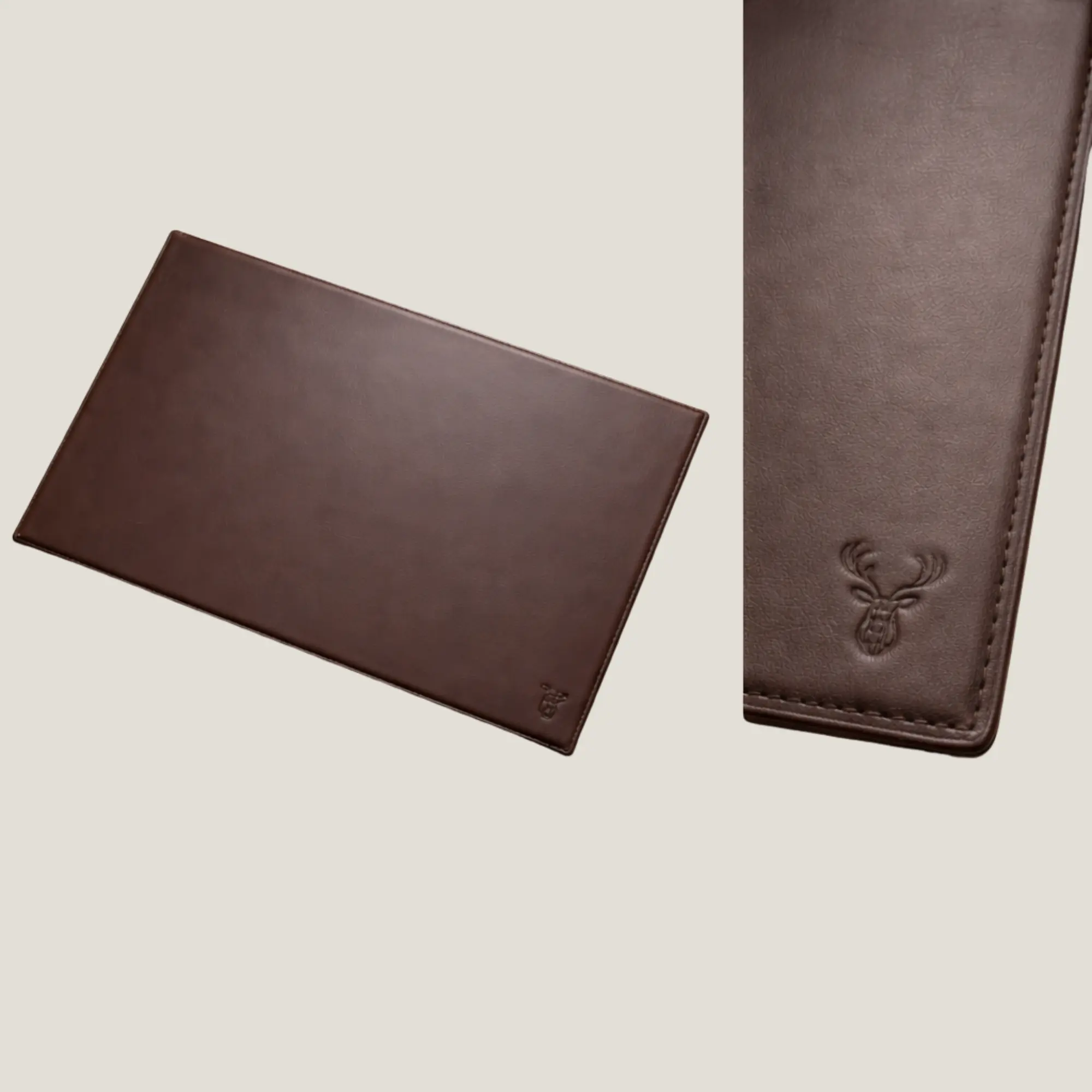 A refined leather writing surface designed to anchor the desk with quiet authority. The Ashbourne Leather Desk Blotter is crafted in rich saddle-toned leather and framed with disciplined stitching, introducing structure and warmth without distraction.