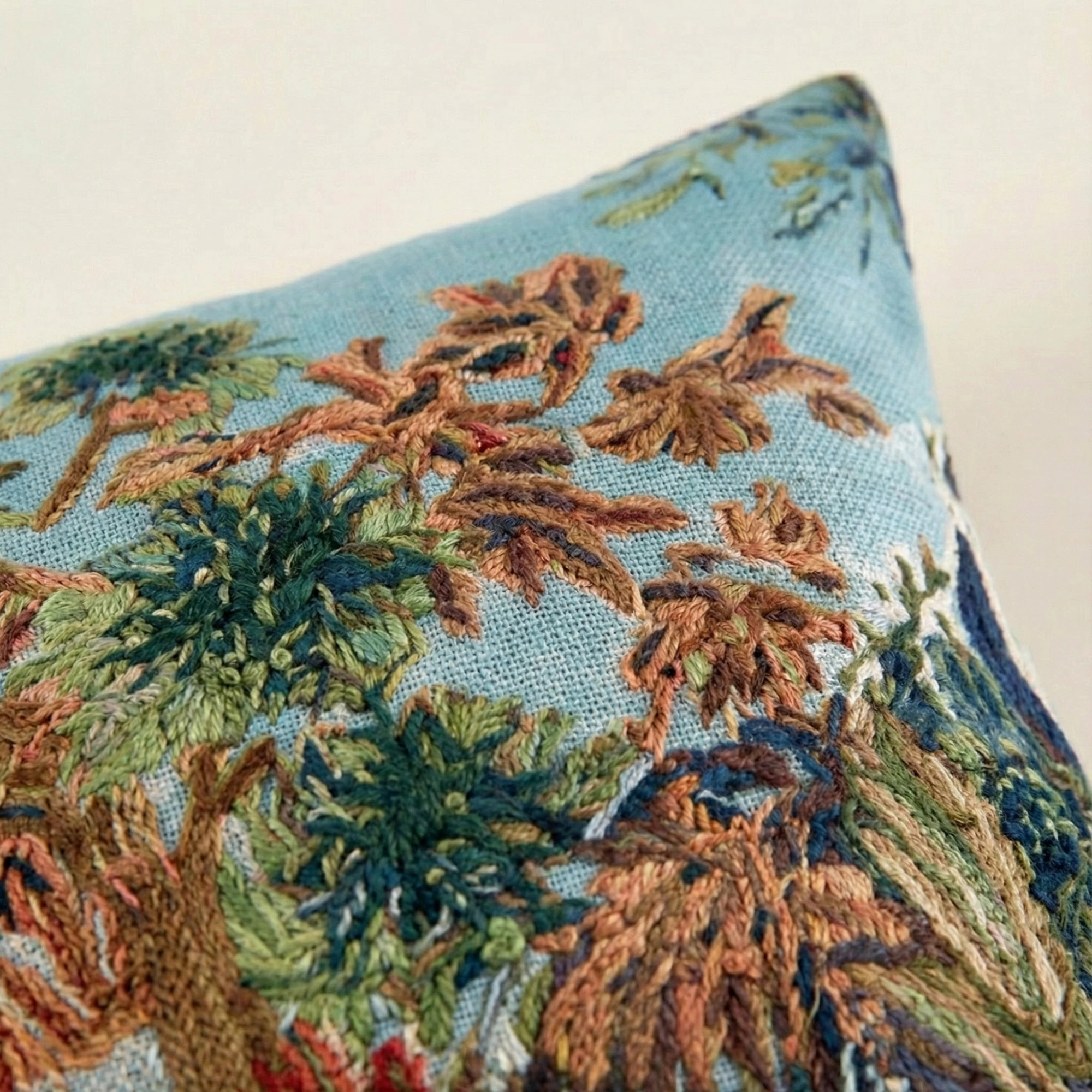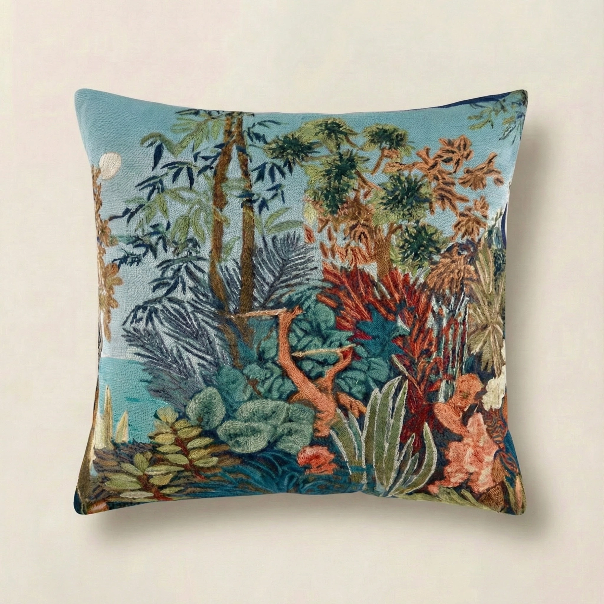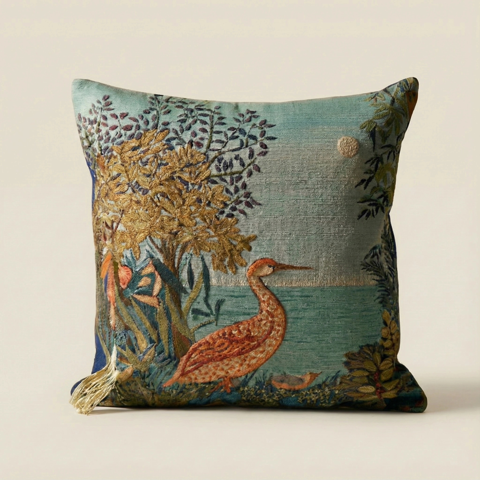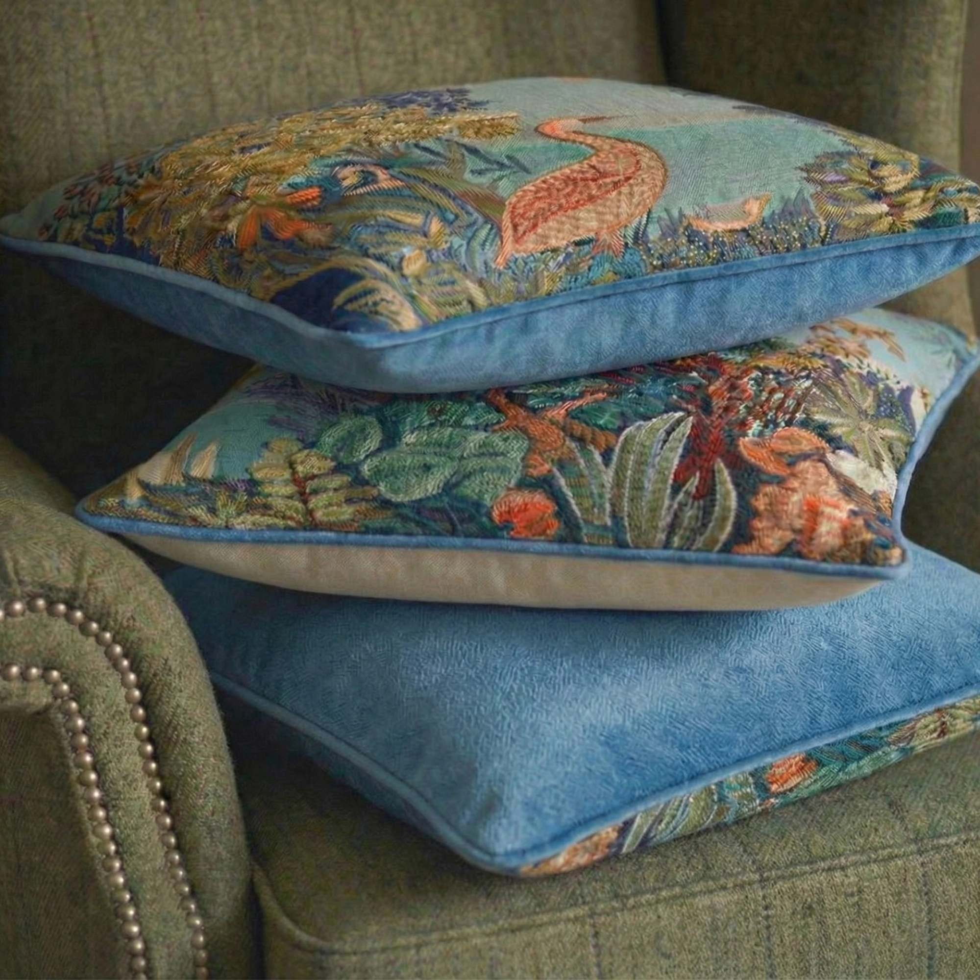 A transportive study in atmosphere and balance, the Waterside Reverie Pillow Pair brings the quiet romance of water and foliage into the home through two complementary tapestry designs. Woven in France in a fine cotton-blend jacquard, the pair balances visual richness with composure, offering depth without excess.